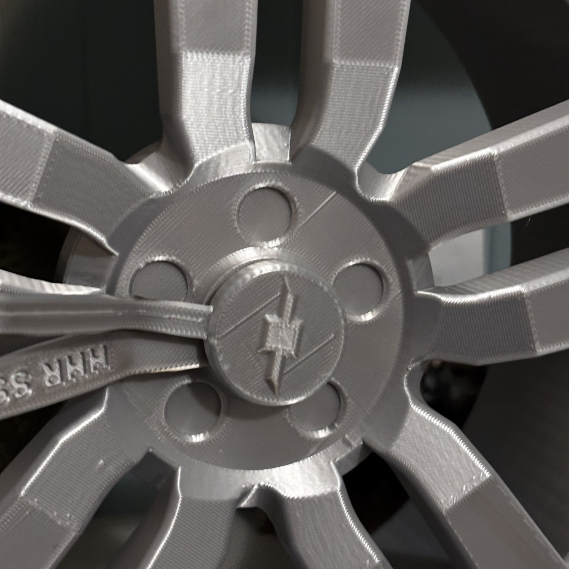 Silver PLA wheel face to mimic polished aluminum